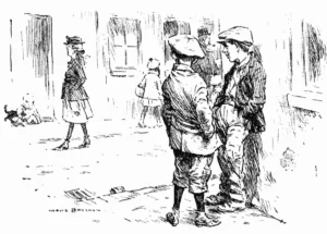 “Punch, or the London Charivari, Vol. 159, 1920-11-03” by Various is a satirical collection of illustrated articles and cartoons from the early 20th century. It reflects the social and political issues of the time, specifically the post-World War I era marked by recovery and changing societal norms. The book primarily covers a range of topics from the absurdities of daily life to the political climate in Britain, all with a humorous and often biting commentary. The content ranges from lighthearted observations on current events, such as coal strikes and political debates, to darker reflections on war and societal expectations. The edition features witty dialogues and poems that encapsulate the frustrations and ironies of contemporary life, often addressing the absurdity of bureaucracy, social customs, and the human condition. Through a blend of text and illustrations, the author(s) cleverly critique public figures and societal norms, creating a vivid snapshot of Britain during a transformative period.